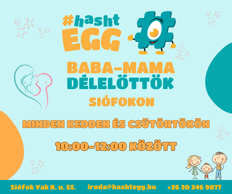 Csatlakozzatok hozzánk a #hashtEGG Baba-Mama délelőttön, minden kedden és csütörtökön, 10:00 - 12:00 óra között.